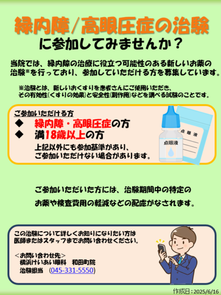 緑内障/高圧眼症の治験について