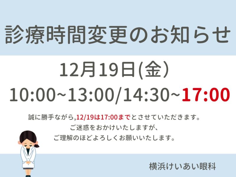 お知らせnews 横浜けいあい眼科お知らせ12月19日 診療時間変更のお知らせ 2025.12.01 診療・休診 12月19日 診療時間変更のお知らせ ※最終受付時刻は、16:30となります。 年末年始の診療時間については、こちら 前へ 一覧に戻る 次へ